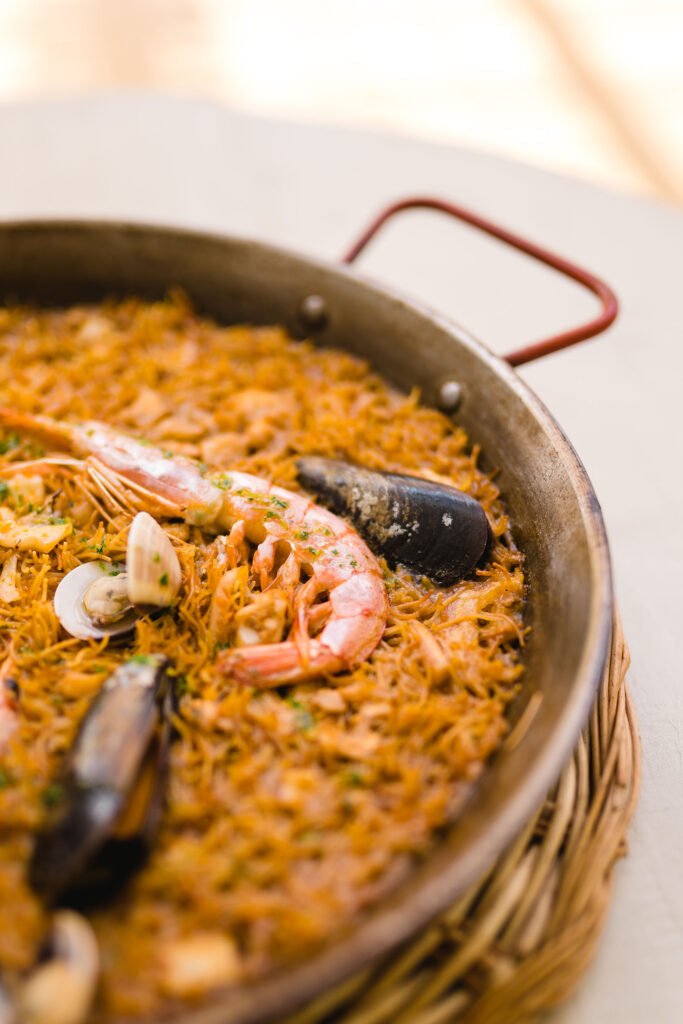Cocina mediterránea hecha con ingredientes de proximidad y producto local. En nuestra carta encontrarás opciones para todos los gustos: carnes, pescados, pastas y, sobre todo, nuestros arroces y fideuás, que son el plato estrella de la casa. Y si prefieres disfrutarlo en tu alojamiento o en la parcela, también te lo preparamos todo para llevar.